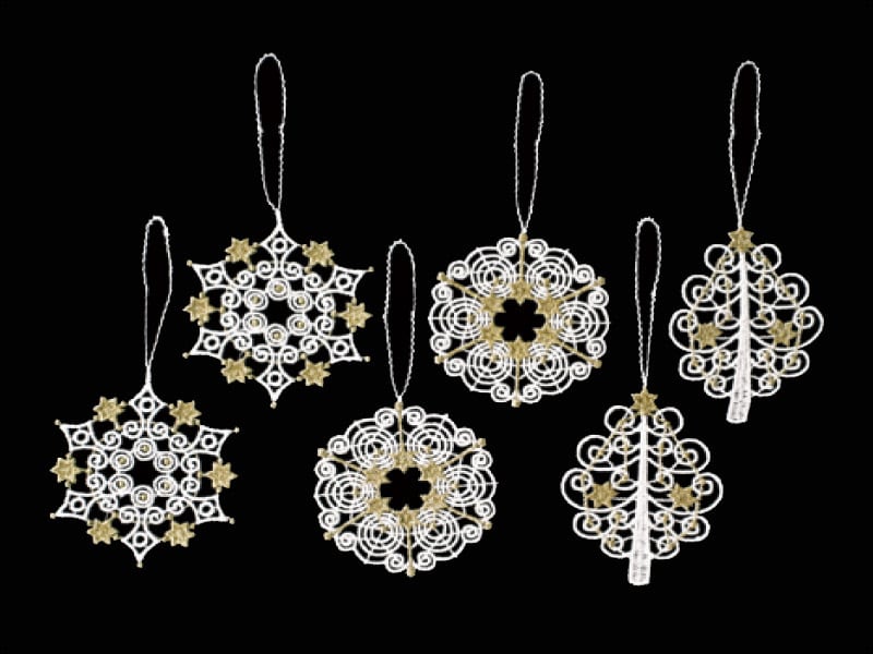 職人の手によって一つ一つ丁寧に作られたレースオーナメントは木製オーナメントとは違った趣が感じられます。
