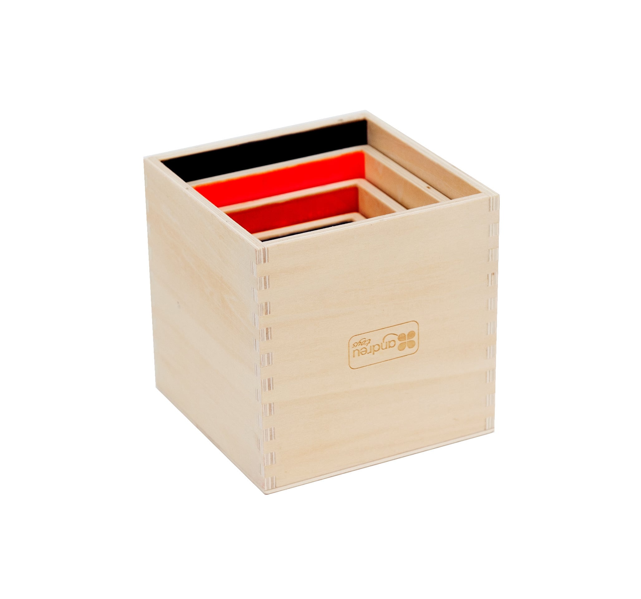 大から小へ積み上げたり、入れたり出したり重ねたり、繰り返しが楽しい玩具。