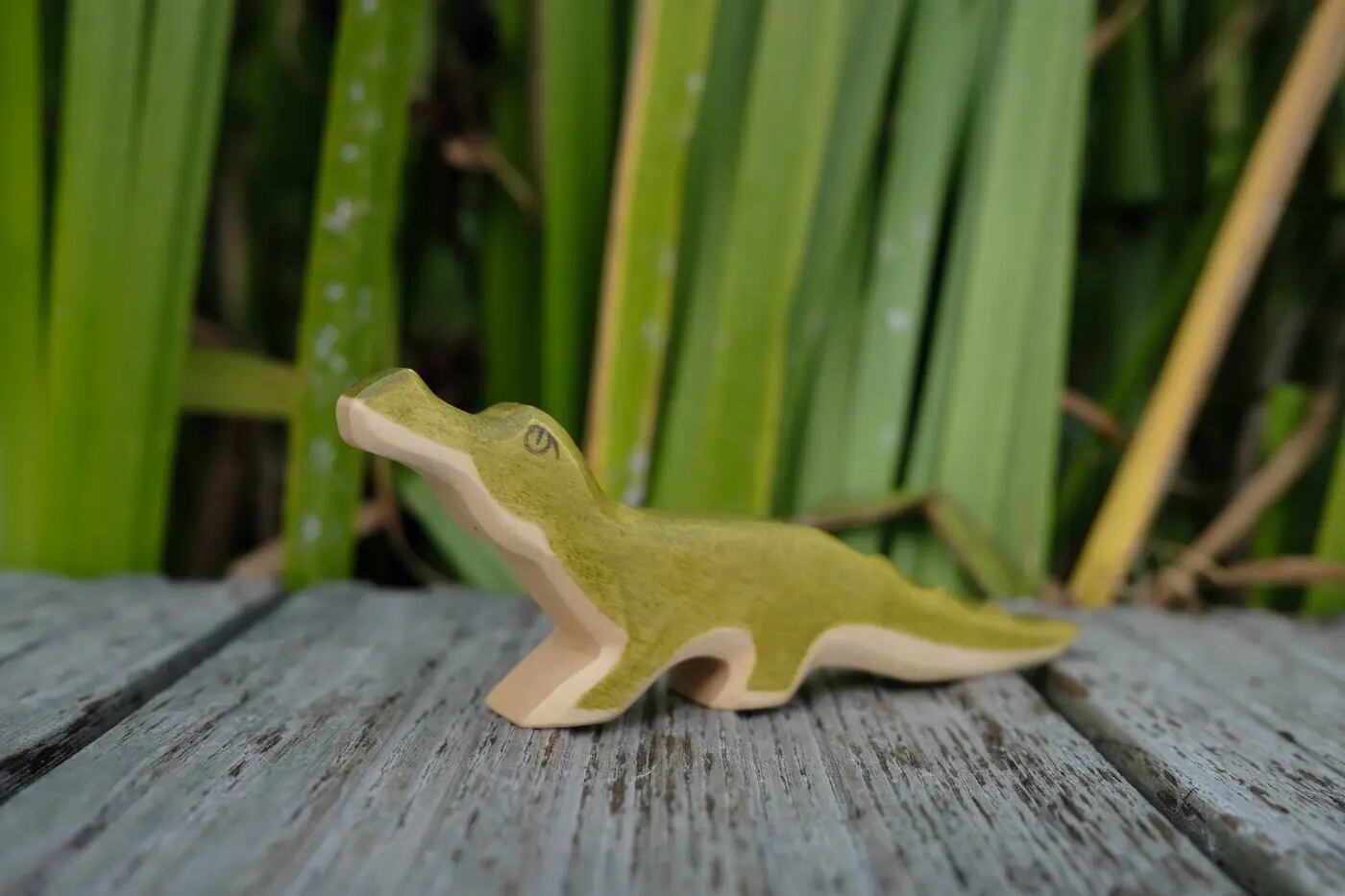 ワニの子は、お母さんと一緒に川で泳いだり、友達と泥んこ遊びをするのが大好きです。