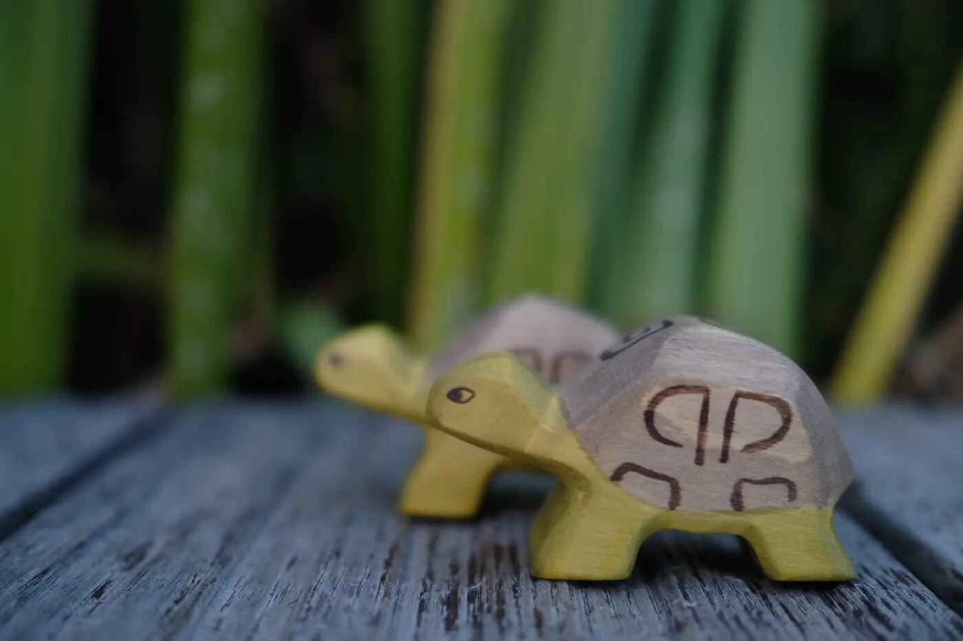 小さなカメは、おいしいハーブの見つけ方を教えてくれるお母さんの後を、ゆっくりとしたペースで歩いていきます。