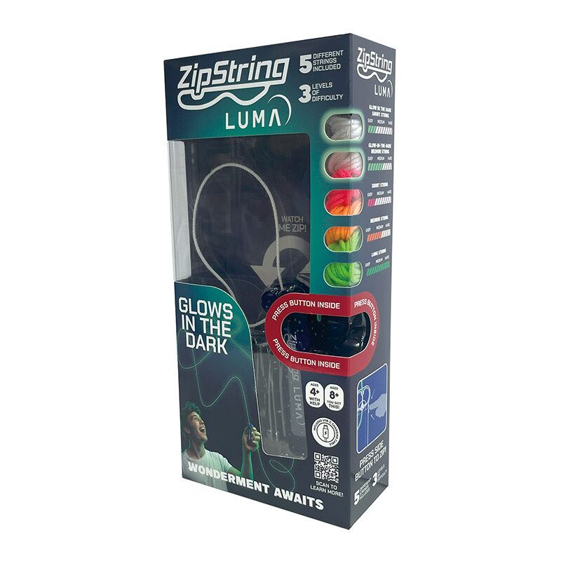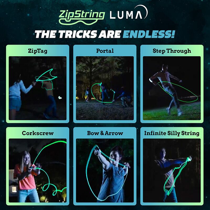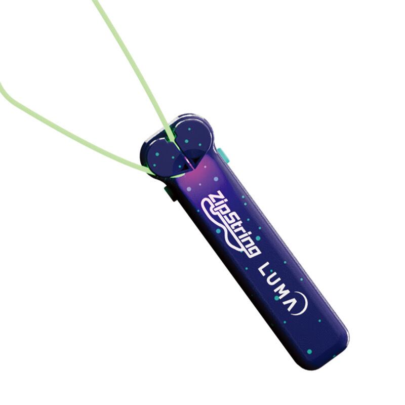 ジップストリング ルーマは、ブラックライトで光をチャージしたヒモが暗闇で鮮やかに光り、幻想的なトリックを楽しめる新感覚トイです。