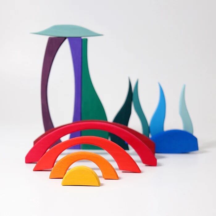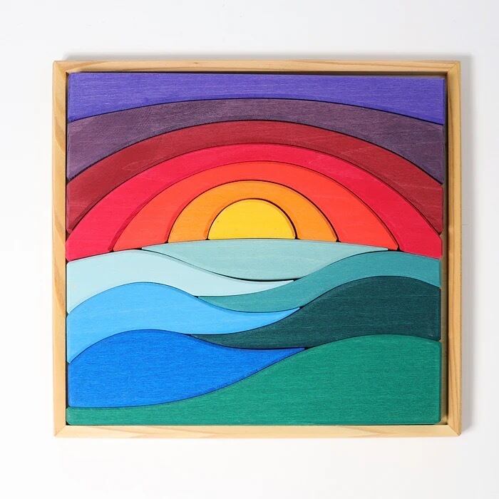 太陽、海、空をモチーフにした色鮮やかな積み木セットです。